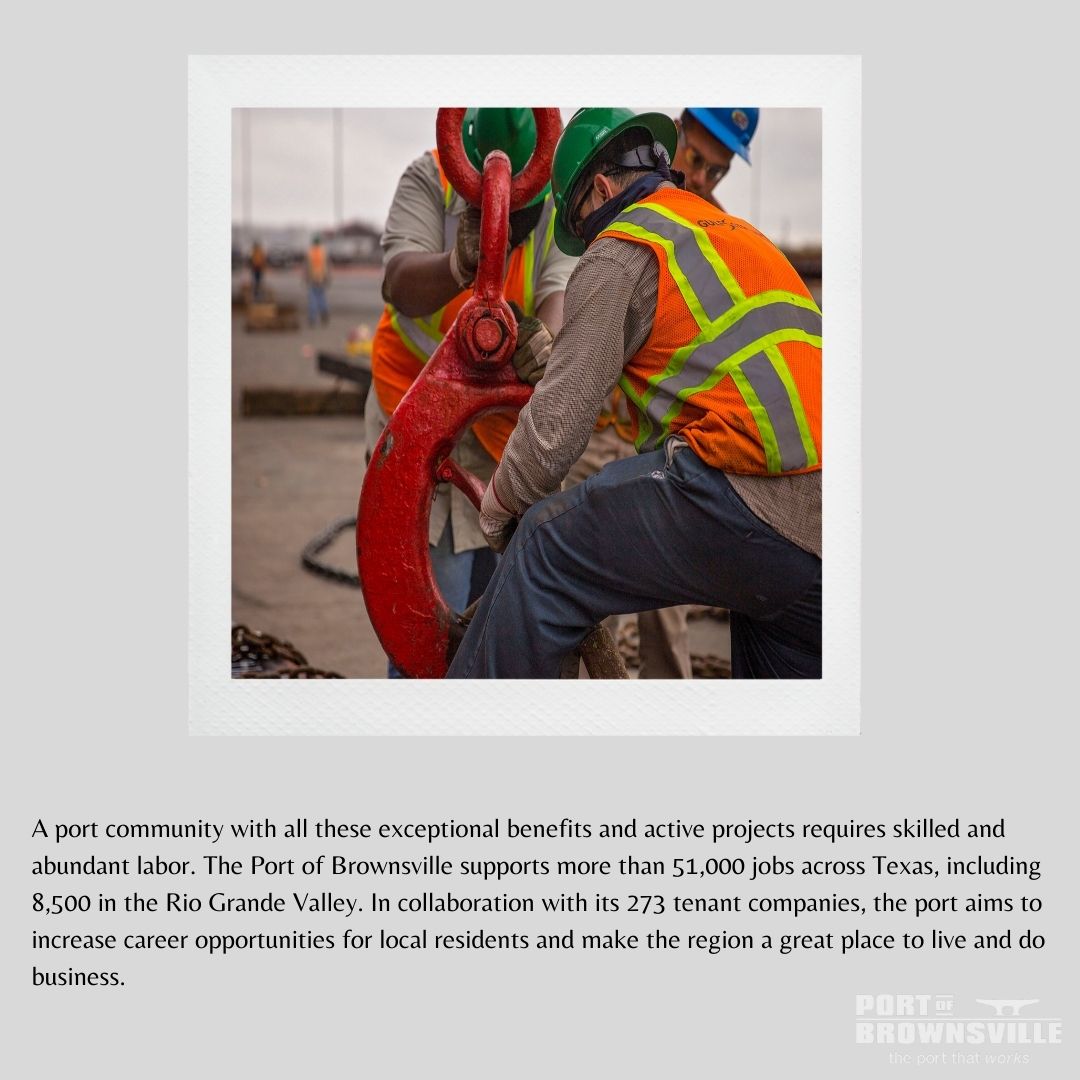 Today, the Port of Brownsville is the driving economic engine for the region, responsible for more than 51,000 jobs and $3 billion in annual state economic activity, according to the latest analysis, with more than 8,500 regional workers directly employed by activities at the port. These jobs infuse more than $2 billion annually into the Rio Grande Valley, distinguishing the port as the region’s leading economic driver and important job generator.