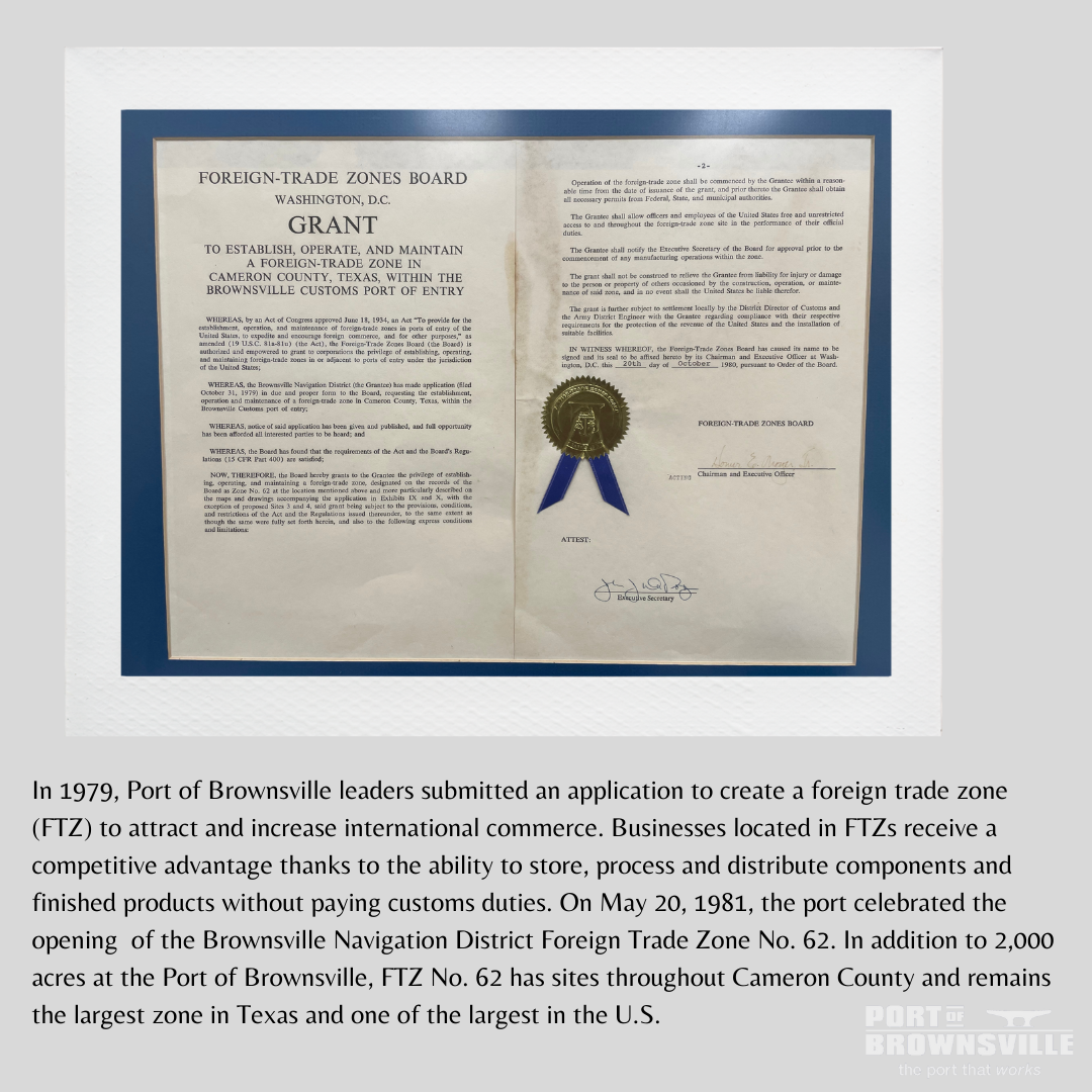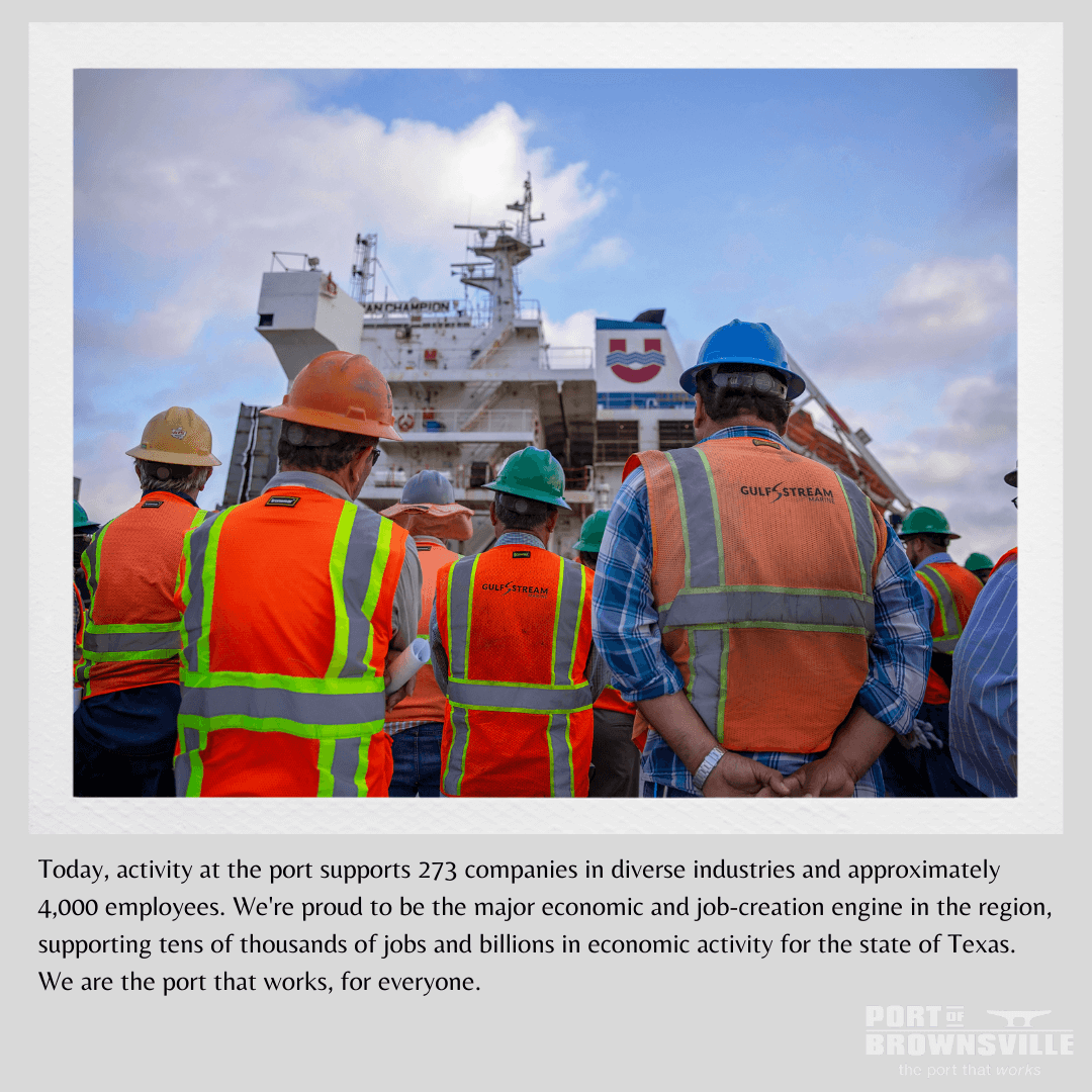 And just like the early years saw much progress, the success of the 273 companies at the Port of Brownsville offer optimism for the years ahead. Our unique location, range of capabilities and smart investments will continue to benefit our regional community for decades to come.
